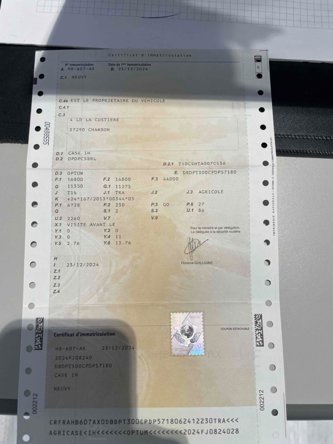 Tracteur CASE IH OPTUM 300 CVX - de 2025 - 1800 heures - pont avant et cabine suspendus - relevage avant - transmission à variation continue - climatisation automatique - 50km/h - freinage mixte hydraulique/pneumatique - AFS en cabine - caméra - 4DE hydraulique arrière - pneus 650/60R34 et 710/75R42